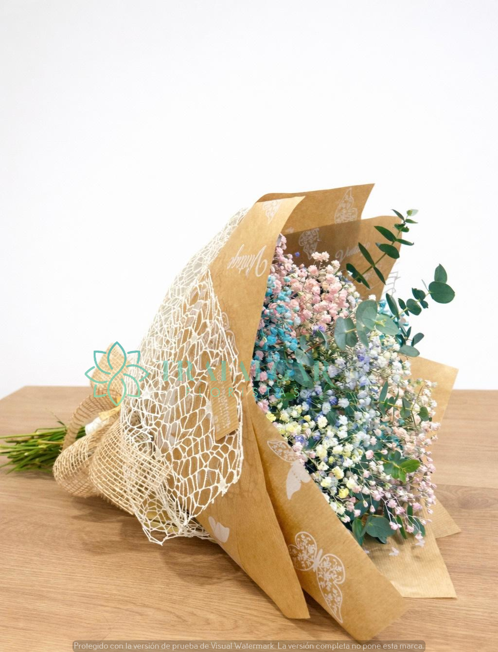 Es un ramo de larga duración, puedes ponerlo en agua, o dejarlo secar.